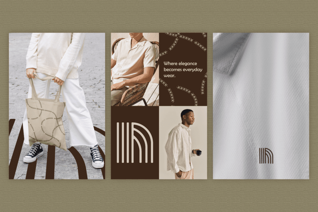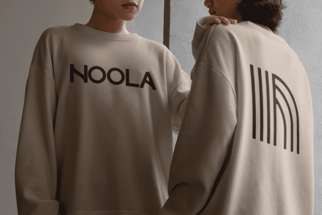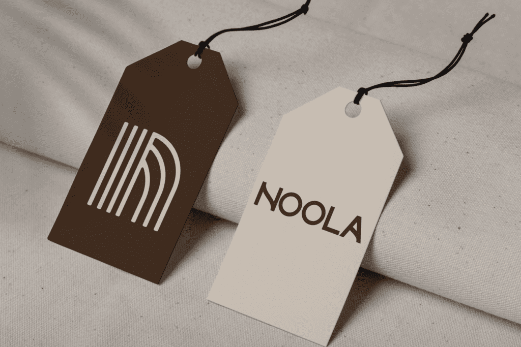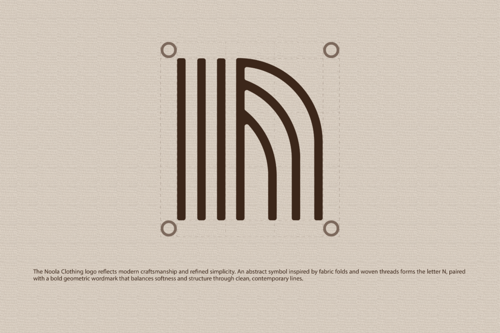 The Noola logo reflects modern craftsmanship and refined simplicity. Inspired by fabric folds and woven threads, the abstract mark forms the letter “N,” while the geometric wordmark balances softness and structure through rounded and angular forms.